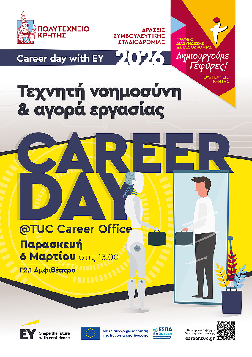 Πληροφορίες: Γραφείο Διασύνδεσης & Σταδιοδρομίας, 2821037331 email: career-center@tuc.gr